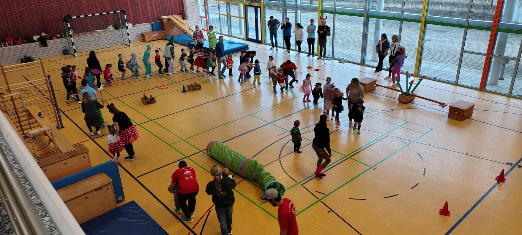 Die Kinder kamen in fantasievollen Kostümen – von Prinzessinnen und Superhelden bis hin zu Tieren und Clowns – und starteten mit einem tollen Bewegungslied und einer Polonaise. Danach hatten sie sichtlich Freude daran, die Stationen auszuprobieren. Mit viel Begeisterung meisterten sie die sportlichen Herausforderungen und wurden von ihren Übungsleiterinnen zum Abschluss mit Süßigkeiten überrascht.