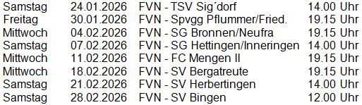 | Sa. 26.07.25 | FVN – SV Herbertingen | 18.00 Uhr |